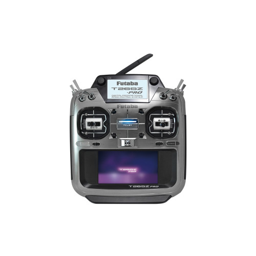 Vysílač T26SZ PRO ve skříňce dokonale padnoucí do ruky je vybaven přesnými celokovovými křížovými ovladači s nastavitelnou aretací/neutralizací, úhlem sklonu páky a mechanicky nasatvitelným rozsahem pohybu nahoru/dolů i vlevo/vpravo. Místo obvyklých potenciometrů jsou osazeny magnetické enkodéry zajišťující vysokou životnost a stálost parametrů. T26SZ diaponuje 8 přepínači, 4 posuvnými ovladači, 6 digitálními trimy a 2 otočnými proporcionálními ovladači. K programování slouží dvojice tlačítek a velký podsvícený barevný dotykový LCD displej zajišťující snadnou orientaci v intuitivním menu. vybrané údaje teůemetrie nebo časomíry je možno zobrazovat na pomocném LCD displeji na horní straně vysílače. T26SZ PRO má paměť pro 30 modelů neomezeně rozšiřitelnou pomocí mikroSD karty a širokou škálu pokročilých mixových funkcí pro akrobatická letadla, větroně, vrtulníky a multikoptéry. Kromě zobrazení telemetrických dat na displeji je k dispozici hlasový výstup telemetrie v zásuvce pro sluchátko (není součástí soupravy). T26SZ PRO je rovněž vybaven zásuvkou učitel-žák a zásuvkou pro programování a nastavování S.BUS serv a gyroskopických systémů CGY770/CGY755/CGY760R nebo GYA553/573. USB nabíjecí/datová zásuvka na horní straně vysílače možňuje používat T26SZ PRO po připojení k PC USB kabelem jako ovladač pro RC simulátor bez potřeby dodatečného USB rozhraní.