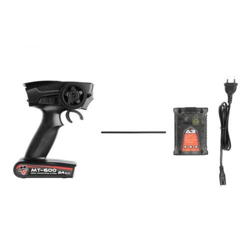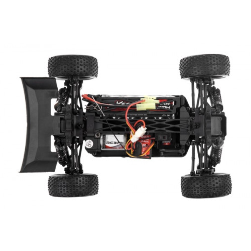 Konstrukce je převážně plastová, k pohonu je použit stejnosměrný motor velikosti "380", který přes stálý převod pohání všechna čtyři kola (4WD). Palubní část RC soupravy sestává z jednotky 2v1 (která v sobě ukrývá přijímač a obousměrný regulátor) a serva řízení. Podvozek konstrukčně vychází z větších modelů, takže se může pochlubit nezávislým zavěšením kol, olejovými tlumiči apod. K ovládání je použita RC souprava pracující v pásmu 2,4Ghz.