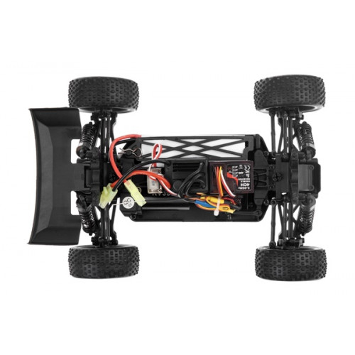 Konstrukce je převážně plastová, k pohonu je použit střídavý motor velikosti "380", který přes stálý převod pohání všechna čtyři kola (4WD). Palubní část RC soupravy sestává z 2,4Ghz přijímače, obousměrného regulátoru otáček a serva řízení. Podvozek konstrukčně vychází z větších modelů, takže se může pochlubit nezávislým zavěšením kol, olejovými tlumiči apod. K ovládání je použita RC souprava pracující v pásmu 2,4Ghz.