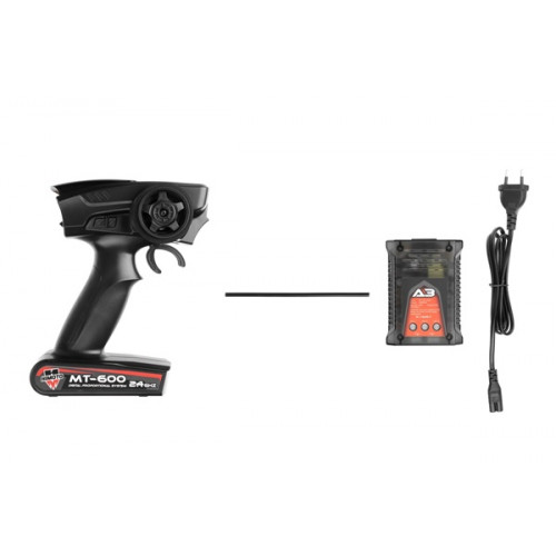 Konstrukce je převážně plastová, k pohonu je použit střídavý motor velikosti "380", který přes stálý převod pohání všechna čtyři kola (4WD). Palubní část RC soupravy sestává z 2,4Ghz přijímače, obousměrného regulátoru otáček a serva řízení. Podvozek konstrukčně vychází z větších modelů, takže se může pochlubit nezávislým zavěšením kol, olejovými tlumiči apod. K ovládání je použita RC souprava pracující v pásmu 2,4Ghz.