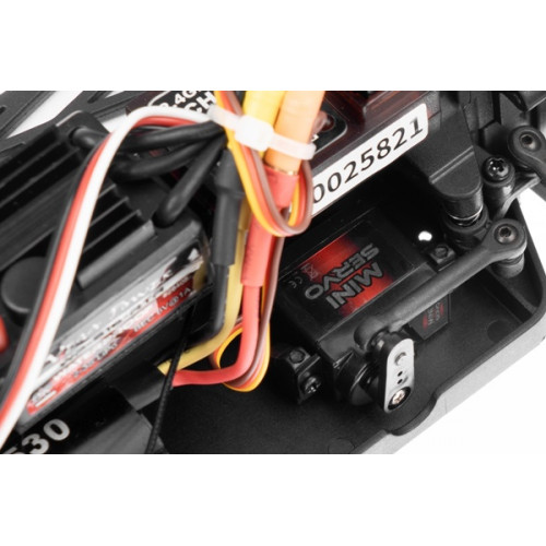 Konstrukce je převážně plastová, k pohonu je použit střídavý motor velikosti "380", který přes stálý převod pohání všechna čtyři kola (4WD). Palubní část RC soupravy sestává z 2,4Ghz přijímače, obousměrného regulátoru otáček a serva řízení. Podvozek konstrukčně vychází z větších modelů, takže se může pochlubit nezávislým zavěšením kol, olejovými tlumiči apod. K ovládání je použita RC souprava pracující v pásmu 2,4Ghz.