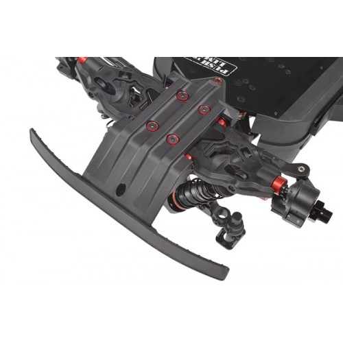 Jádrem modelu SHIROI je CNC frézované 3mm hliníkové plato podvozku, vyztužené vzpěrami a vysokými kompozitními bočními chrániči. Tato tuhá kostra je konstruována tak, aby s lehkostí zvládala jízdu ve vysoké rychlosti, drsný terén a náročné dopady. Neprůstřelné ocelové hnací ústrojí s CNC frézovanými ozubenými koly, třemi diferenciály naplněnými olejem a odolnými hnacími hřídeli CVD zajišťuje maximální účinnost a spolehlivost jak při napájení 4S, tak i 6S LiPo.