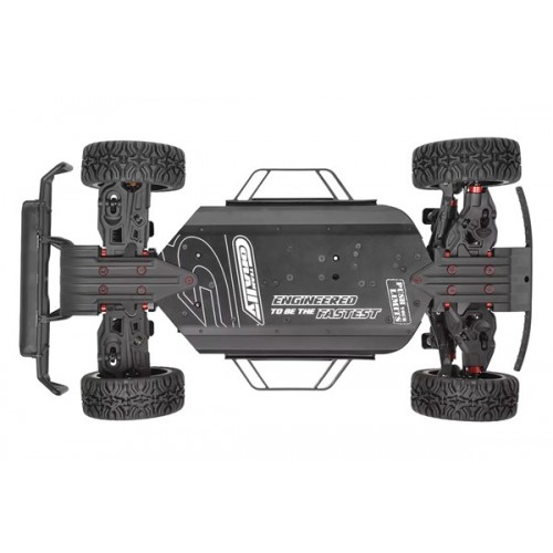 Jádrem modelu SHIROI je CNC frézované 3mm hliníkové plato podvozku, vyztužené vzpěrami a vysokými kompozitními bočními chrániči. Tato tuhá kostra je konstruována tak, aby s lehkostí zvládala jízdu ve vysoké rychlosti, drsný terén a náročné dopady. Neprůstřelné ocelové hnací ústrojí s CNC frézovanými ozubenými koly, třemi diferenciály naplněnými olejem a odolnými hnacími hřídeli CVD zajišťuje maximální účinnost a spolehlivost jak při napájení 4S, tak i 6S LiPo.