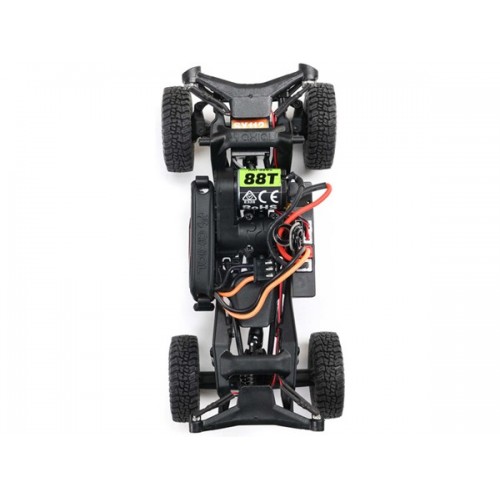 Nově zkonstruovaný podvozek platformy SCX30 obsahuje šikmé ochranné kryty, po kterých model snadno sklouzne po překážce. Přímé nápravy s šikmými táhly poskytují vysokou středovou světlou výšku. Plně funkční odpružení je podpořeno pružinovými tlumiči. Výkon z motoru Axial 88T je přes převodovku a hnací hřídele přenášen na kola, přičemž v pohonném ústrojí jsou použita kuličková ložiska pro hladký chod. Oficiálně licencované pneumatiky Mickey Thompson Baja Boss jsou vyrobeny z měkké směsi pro vysokou přilnavost.