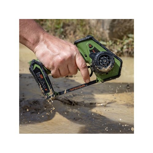 DX Rugged+ vyniká designem vysílače, který říká, že bez obav zvládáte i ten nejdivočejší terén, nejtěžší podmínky a nejtvrdší konkurenci. Proto jde odolnost ruku v ruce s pohodlím. Vestavěná boční přihrádka nabízí uložení nářadí a jsou dodávány i dva úchyty na řemínek na krk (jeden pryžový, druhý zalisovaný do šasi), takže můžete mít okamžitě volné ruce.