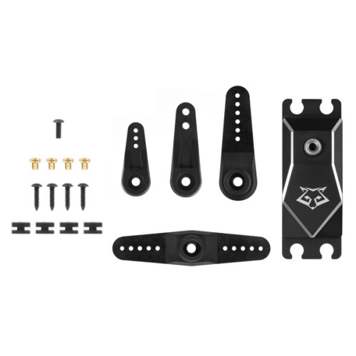 Super silné a velmi rychlé programovatelné digitální standardní servo 83g s brushless motorem. Titanové/ocelové převody, vysoké napájecí napětí 10,0–14,4V (3S LiPo), 3xBB. Možnost nastavení neutrálu 1520/760 µs (333/666 Hz). Ideální jako servo cykliky pro RC vrtulníky 500–800. Tah 30kg.cm, rychlost 0,113s/60°při 10,0V, tah 35kg.cm, rychlost 0,102s/60° při 11,1V, tah 38kg.cm, rychlost 0,090s/60° při 12,0V, tah 40kg.cm, rychlost 0,086s/60° při 12,6V. Hliníková krabička pro dokonalé chlazení při vysokém zatížení.