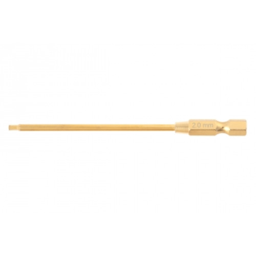2,0mm imbusový bit s 6,35mm šestihranným adaptérem pro elektrické šroubováky, vyrobený z tvrdé oceli s titanovou povrchovou úpravou.