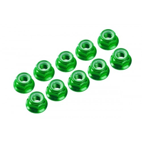 M4/4 mm hliníkové samojistné matičky s osazením zelené, 10 ks.