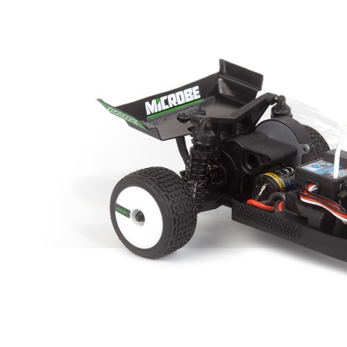 Elegantní 1,5 mm eloxované hliníkové plato podvozku, osazení kuličkovými ložisky a plynulá 3kolová zadní převodovka společně dodávají modelu Microbe stabilní a přesný pocit z jízdy. Přidejte olejové tlumiče a odvětrávaná kola s pěnovými vložkami a získáte malou buggy, která miluje zatáčky, pohlcuje nerovnosti a s jistotou vystřeluje ze zatáček.