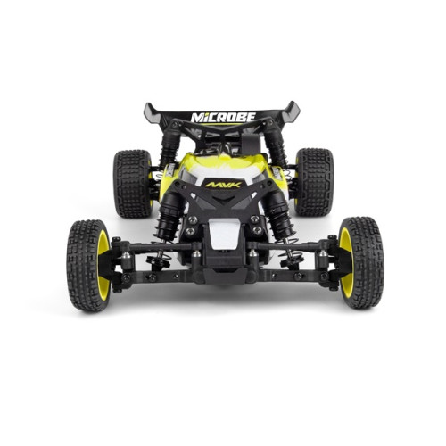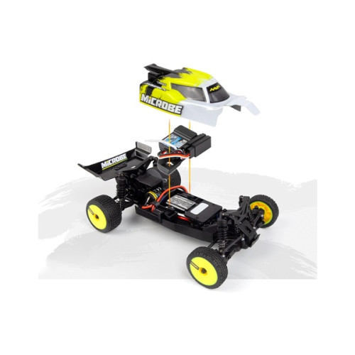 Elegantní 1,5 mm eloxované hliníkové plato podvozku, osazení kuličkovými ložisky a plynulá 3kolová zadní převodovka společně dodávají modelu Microbe stabilní a přesný pocit z jízdy. Přidejte olejové tlumiče a odvětrávaná kola s pěnovými vložkami a získáte malou buggy, která miluje zatáčky, pohlcuje nerovnosti a s jistotou vystřeluje ze zatáček.