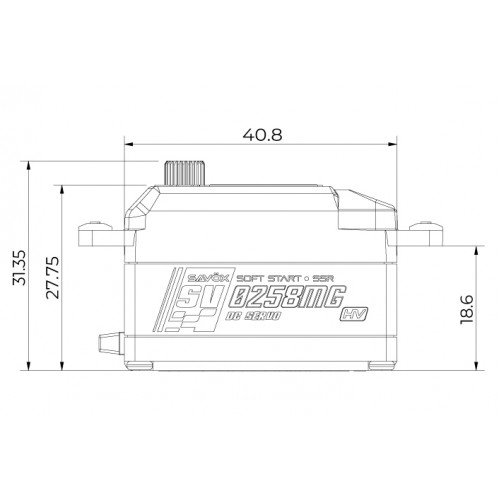 Savöx SV-0258MG je základní nízkoprofilové servo navržené pro maximální výkon a efektivitu. Díky nízké spotřebě funguje bez problémů s většinou regulátorů – bez nutnosti přídavných kondenzátorů.