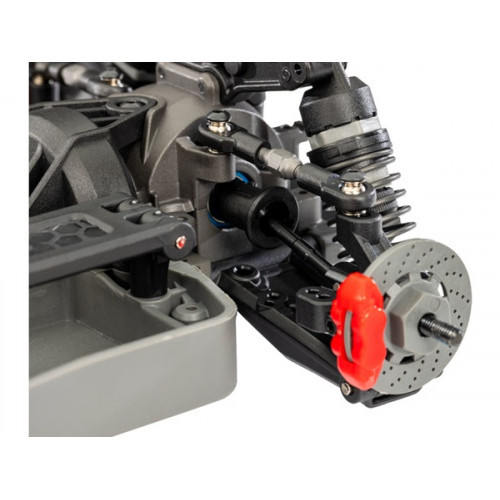 Podvozek 4-Tec účinně překonává nerovnosti pomocí olejových tlumičů s exkluzivními X-kroužky, které skvěle těsní. Tlumiče jsou nastavitelné - předpětí pružin lze změnit pomocí podložek, můžete upravit viskozitu oleje v tlumiči, nebo můžete pružiny vyměnit za jiné s různou tuhostí. Instalované extra měkké pružiny poskytují maximum přenosu hmotnosti pro zahájení driftu.