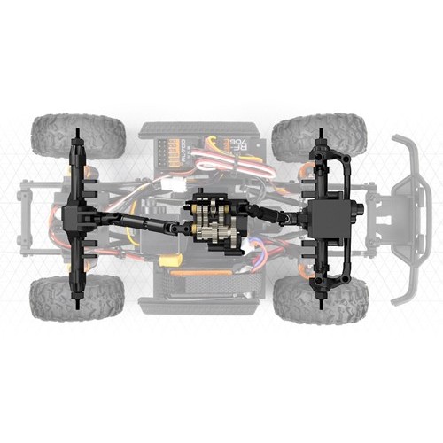 Nízký převod se může pochlubit působivým převodovým poměrem 81,44:1, který poskytuje výjimečné schopnosti při pomalém průchodu na úzkých, technických stezkách a překážkách. A když na rovném, otevřeném úseku potřebujete přidat na rychlosti - nebo prostě jen potřebujete vysoký výkon, abyste se dostali do stoupání - stačí na vysílači přeřadit na vysoký převod, čímž získáte převodový poměr 20,36:1, který vám nabídne pořádnou rychlost.